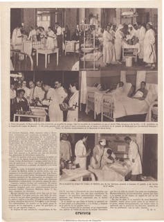 El sistema sanitario también estuvo sobrepasado. Se improvisaron numerosos centros, que se denominaron “hospitales de sangre”, para acoger a personas heridas o enfermas. Muchos de ellos fueron hoteles, como el Ritz de Madrid. También ahora se improvisan hoteles medicalizados y hospitales de campaña.
