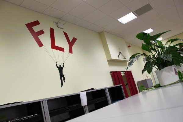 La frase en inglés ‘Let´s get together’, rotulada en rojo sobre una pared blanca, indica que has llegado a la sala de reuniones de esta oficina. Y del mismo modo, el dibujo de una percha te muestra dónde está el ropero o la palabra ‘Open’ te invita a abrir una ventana. Así son las oficinas de la Cambridge University Press, compañía editora de la Universidad de Cambridge. Y la responsable es una empresa española: Mercader de Ideas.