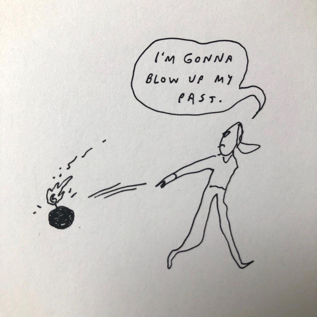«Creo que el dibujo consiste en aislar una idea o una emoción y transmitirla directamente. En mi opinión, los detalles, el color y el sombreado son a menudo distracciones innecesarias para el objetivo de la ilustración. Esto lo aprendí de mi trabajo como dibujante del New Yorker y lo hago aún más en mis viñetas de Instagram. Parte de la razón por la que no me gusta poner detalles en mi trabajo es que me resulta difícil saber cuáles son significativos y cuáles no. Me️ pasa lo mismo con respecto a las posesiones: tener demasiadas cosas me incomoda. (Aunque las tengo)».