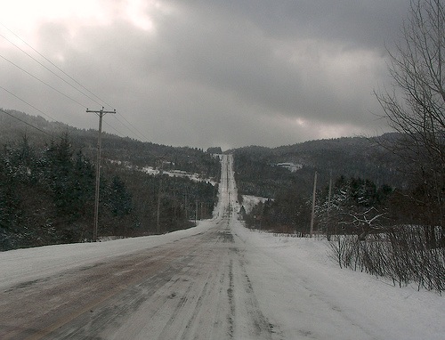 4- Chartierville (Quebec). En el lado canadiense, la Ruta 253 desciende recto como una flecha por la cara norte de esta larga colina magnética hacía la localidad de Chartierville, a unos pocos kilómetros en la distancia. Un mosaico de granjas lecheras, campos de cultivo y colinas se extienden hasta el horizonte…engañoso.