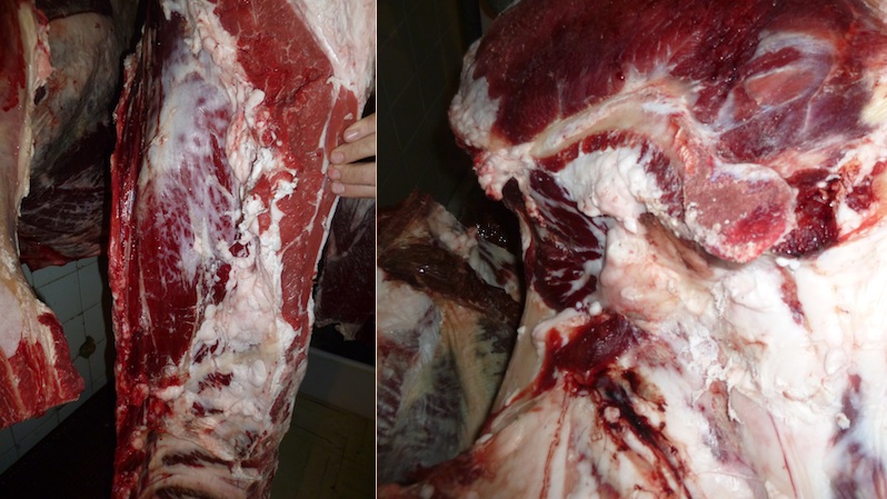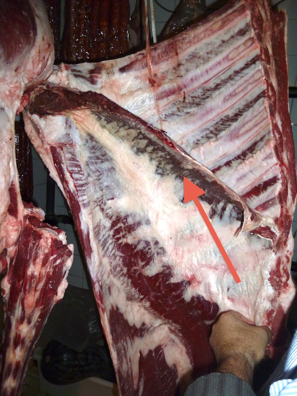 La vitrina de una carnicería está llena de partes de vacuno que suelen ser conocidas y lustrosas: tapa, contra, redondo, espaldilla, entrecot, chuleta, solomillo, babilla… Pero no hay nada como entrar en la cámara de un carnicero, su sanctasanctórum, para descubrir que existen partes de la ternera, la vaca o el buey que uno no sabía ni dónde las tenían. Es el caso de la maravillosa entrécula, el “bocado de la reina” o la propia “chuleta de carnicero”, partes que, o bien por su aspecto, o porque son demasiados buenas y escasas, no aparecen en los estantes normalmente.