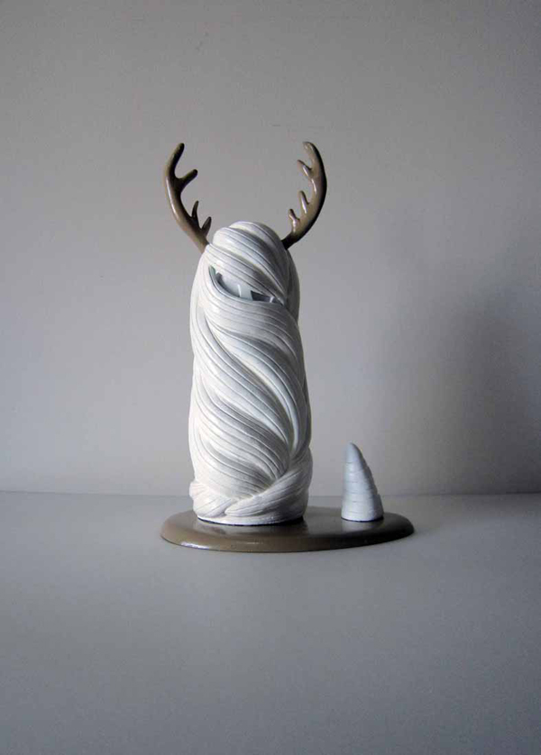 Su estilo, más allá de las etiquetas, resulta limpio pero oscuro. Su obra es como un cuento para niños donde sus personajes, sin dar miedo, lo intentan por su iconografía tenebrosa y de ciencia ficción. “En mi obra procuro abarcar tantas disciplinas artísticas como me apetece. Me gusta investigar y abrirme a nuevos mundos. En función de los proyectos puedo desarrollarlos de una manera u otra, según las necesidades, y, sinceramente, porque también me divierto más. Voy del grafito al acrílico, de pintar en papel, madera o pared a modelar arcilla, y lo que voy manteniendo son líneas estéticas de trabajo. Personajes infantiles, naturalezas, animales fantásticos y mucho, mucho blanco. Una vez me dijeron que mi oscuridad era blanca y es verdad”, explica la Agente Morillas.