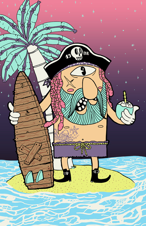 El mar queda lejos de Medellín, la ciudad donde nació y actualmente reside Alejandro Giraldo, pero siempre tuvo el deseo de ser surfista. Por suerte, el ilustrador colombiano puede dibujar para calmar esos anhelos de montarse sobre las olas.