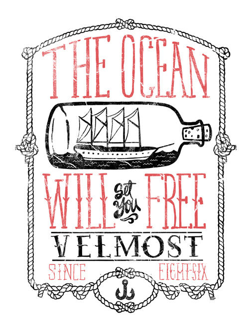 La figura del mar vuelve a aparecer en Velmost, una pequeña marca de camisetas que Giraldo ha creado y en el que los elementos marítimos vuelven a tener un papel importante en sus diseños.