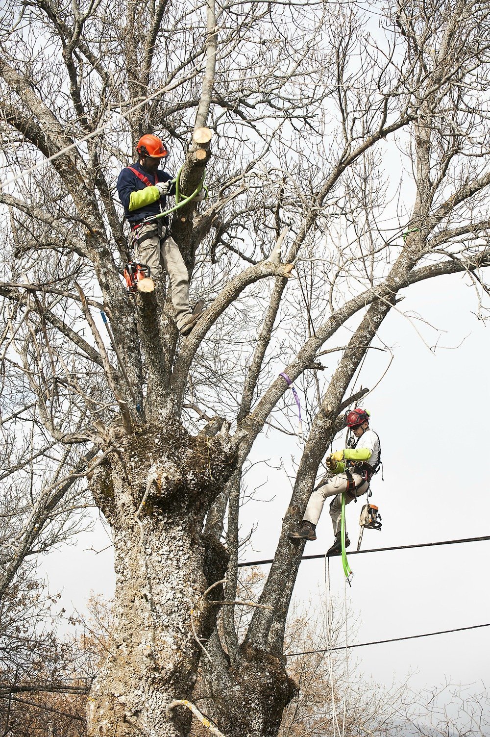 El compendio de habilidades que requiere este trabajo es extenso. Lo primero es el dominio de los nudos y la técnica de la trepa que aseguren una sujeción eficaz y permitan moverse por el árbol con soltura. La manera de subir y bajar de él difiere de otros trabajos verticales, e incluso del alpinismo, y se acerca más a la espeleología. Y aunque la mayoría de los nudos proceden del alpinismo, ser un experto escalador no es suficiente en el mundo de la poda. De hecho, algunos alpinistas que han probado suerte en esta escuela han desistido aterrados por la gran inestabilidad que supone estar suspendido en un árbol, en contraste con la previsible quietud de las rocas. La poda en altura es un arte de equilibrio dinámico, y los nudos empleados —que rondan los veinticuatro tipos— se adaptan a cada situación. En definitiva, a cada árbol.