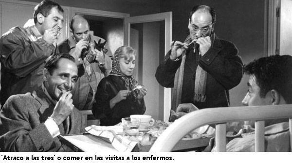 En España no hay cine de granjeros desahuciados. Hay historias de curritos tentados por el dinero como en Atraco a las tres. Personajes de la posguerra civil que malviven en pensiones, ahorran para comprarse una radio o unas medias. Tiempos en los que una visita a un paciente en el hospital era una oportunidad para comer (¿Volveremos a esos tiempos? ¡Quita! ¿Con los recortes en Sanidad?)