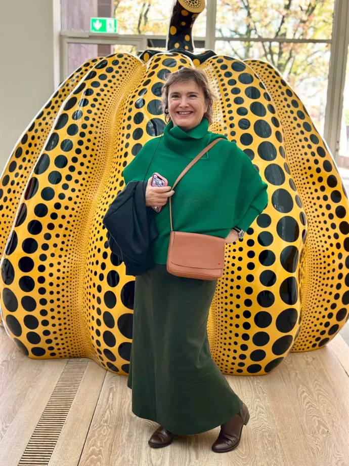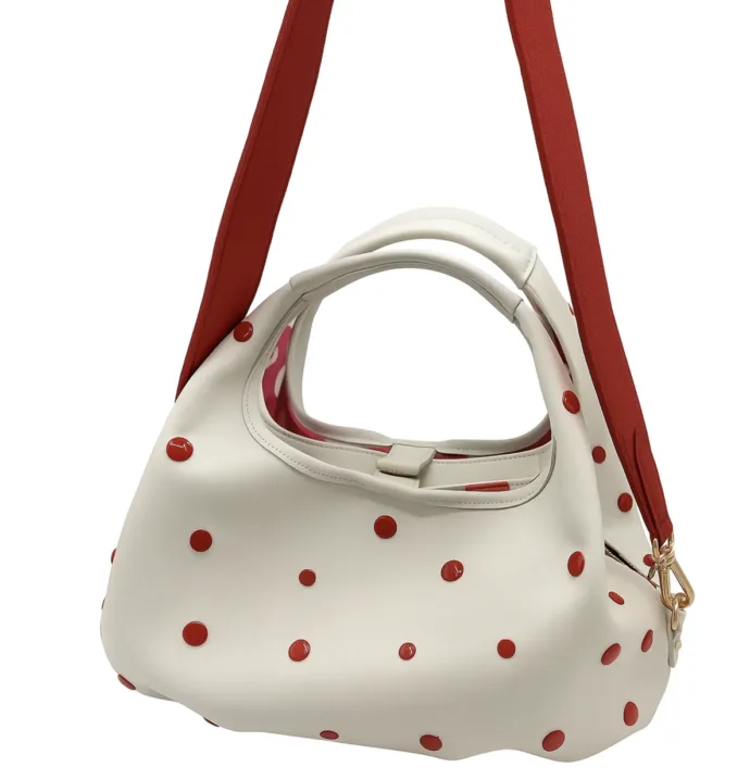 Por eso, más allá de lo visual, la diseñadora se centró en entender la mentalidad de la artista. «Su personalidad rompedora, junto a la obsesión por los puntos, fueron la base». A partir de ahí, esa repetición constante, casi compulsiva, no se traslada a sus bolsos como un ornamento, sino como estructura conceptual. La colección no imita a Kusama: la interpreta.