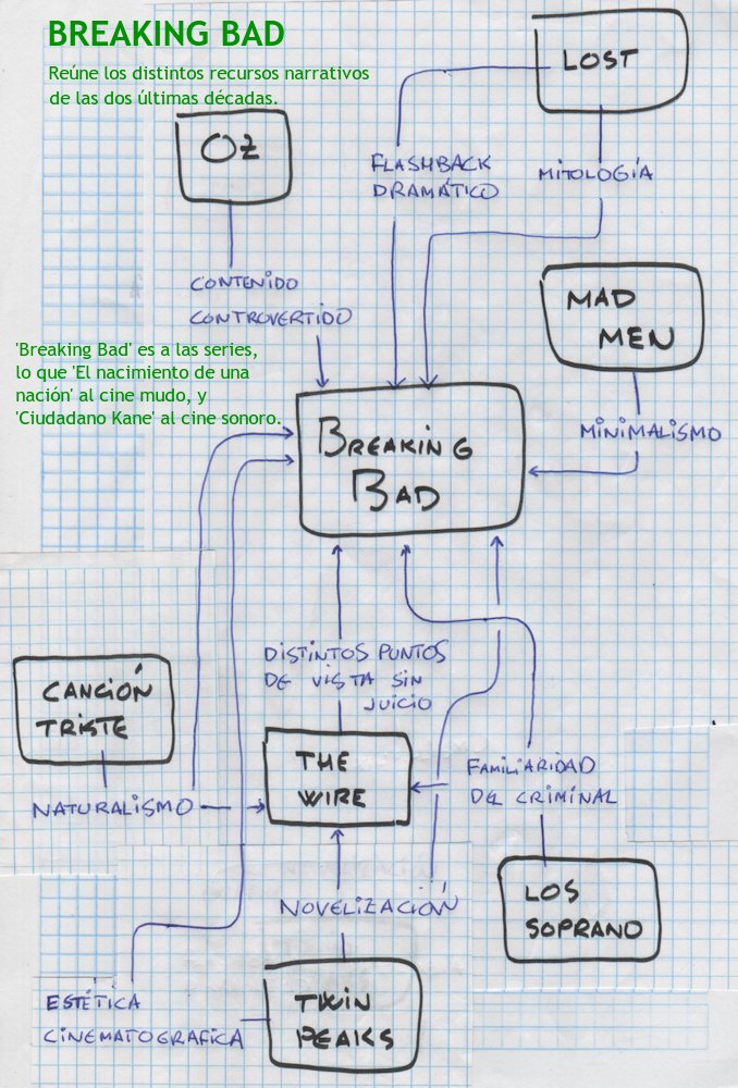 (Abajo, un mapa mental sobre las técnicas que otras series que Breaking Bad recrea, y algún que otro espóiler pequeñito).