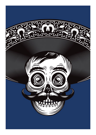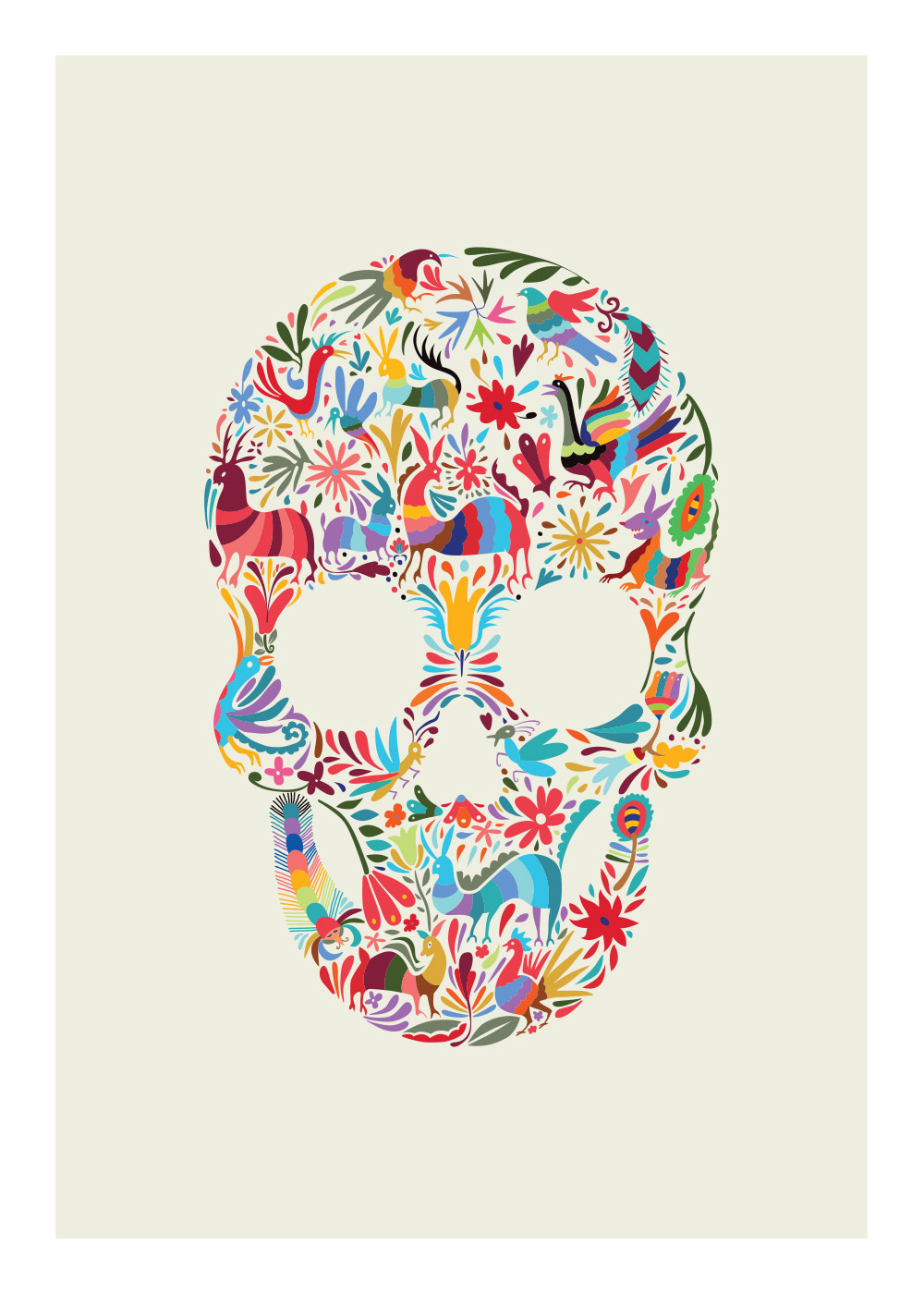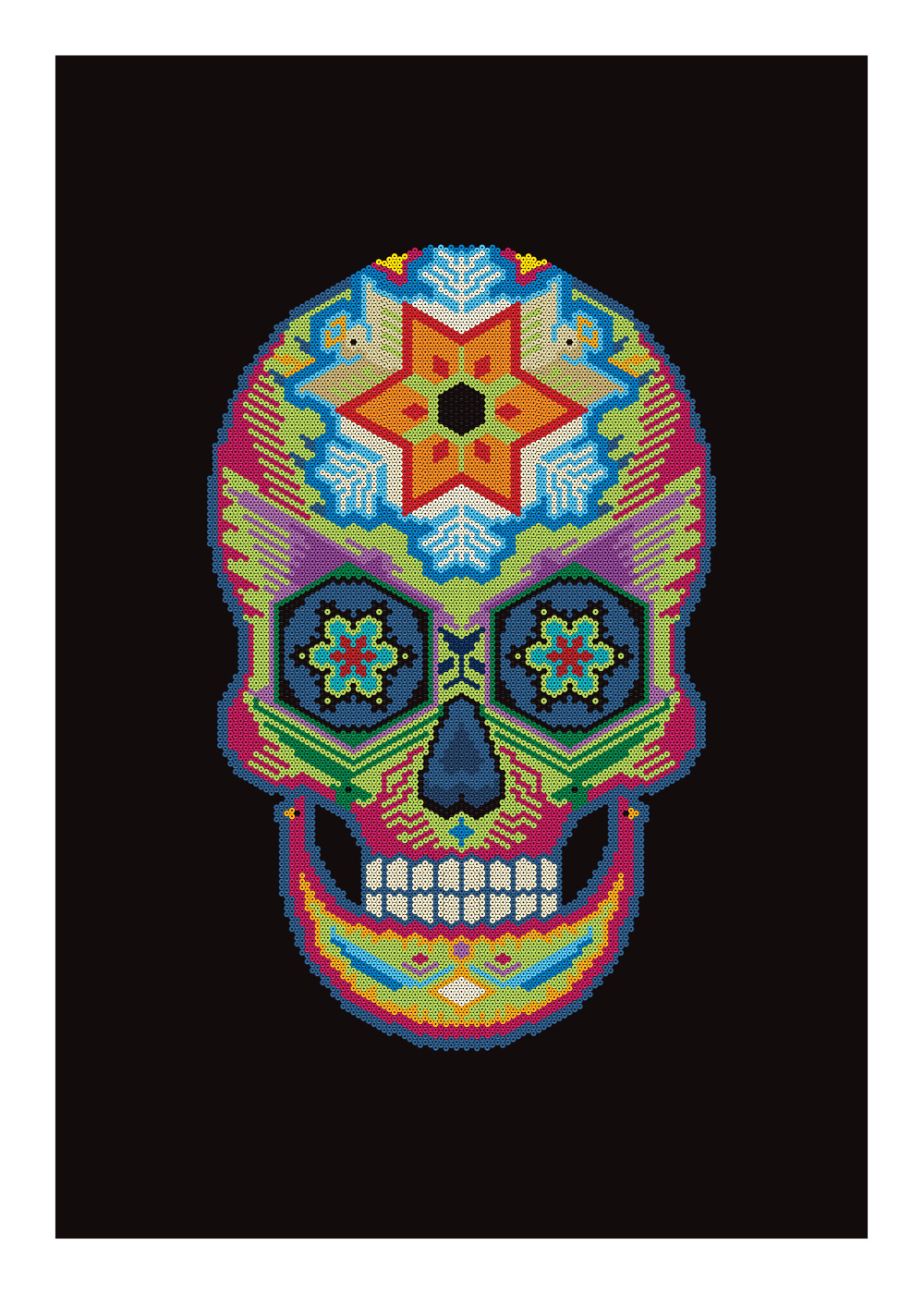Henríquez pensó en la muerte y su imaginación lo llevó hasta una calavera. Ese sería el comienzo. La imagen de una calaca haría de molde y a partir de ahí dejaría que empezara a ocurrir lo que que tuviera que ocurrir. “Tomé como lienzo la figura de un cráneo para hacer un recorrido de la historia, artesanía, fiestas y personajes populares mexicanos”, cuenta el director de arte.