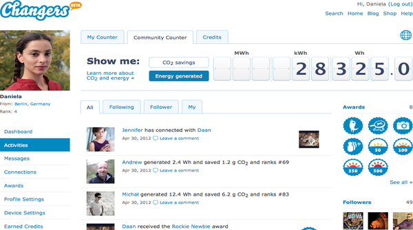 Para Daniela Schiffer se trata de «hacer que la lucha contra el calentamiento global se convierta en una actividad comunitaria, en la que la gente colabore unida, compita entre ella por ver quién genera más energía y donde se inspiren los unos a los otros». Como buenos geeks son amantes de las estadísticas, así que la web ofrece datos con los logros individuales de cada usuario además de agruparlo por ciudades, países o comunidades virtuales. De momento Japón y Alemania se colocan a la cabeza en el índice de actividad de esta incipiente sociedad sostenible.