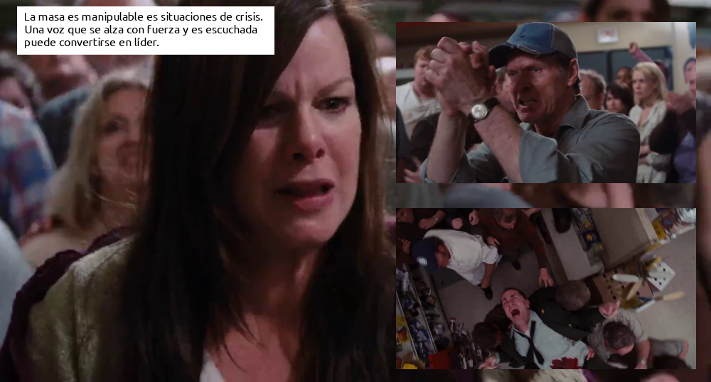 Por esto, no es extraño que algunos espectadores abandonen en cuanto aparecen los primeros tentáculos. La saga cinematográfica de Scary Movie y otras producciones se han burlado de escenas similares. De hecho, los tentáculos nos desconciertan: ¿Estamos viendo una película de terror o una payasada? Al mando está Darabont, que sabe cómo manejar personajes en entornos cerrados (Cadena perpetua, La milla verde) y pronto toma el pulso al drama.