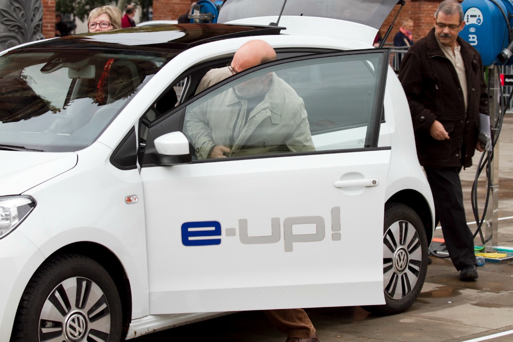 El goteo de visitantes que se suman a la cola para probar los vehículos es incesante. Le toca el turno a Pedro y me subo con él a un e-up!, el último modelo que le falta por probar. «Mucha gente se queja porque son silenciosos; dicen que necesitan oír el ruido del motor, sentir el cambio de marchas… Para mí todo este silencio es algo mágico. Es cierto que uno tiene que acostumbrarse, pero es que, al final, esto será lo normal. Igual que ahora escuchamos un motor de dos tiempos y nos damos la vuelta porque hace ruido, en unos años escucharemos un motor de cuatro tiempos y también nos giraremos».