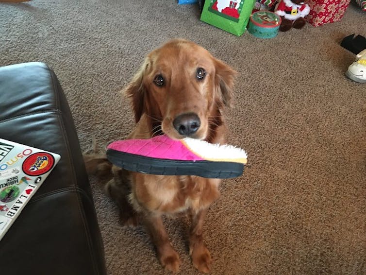 Si pedimos al perro que nos dé la zapatilla, ¿cómo distinguirá el objeto correcto? A modo de descarte, elegirá el cuerpo cuyo nombre desconoce. Si nuestra respuesta es positiva, en adelante él aprenderá que zapatilla es ese objeto de tela de colores y goma.