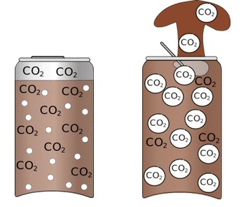 Al abrir y liberar la presión con que se fabrican estos refrescos estas burbujas se expanden y escapan inmediatamente, empujando en su camino el líquido que las rodea, que sale disparado.