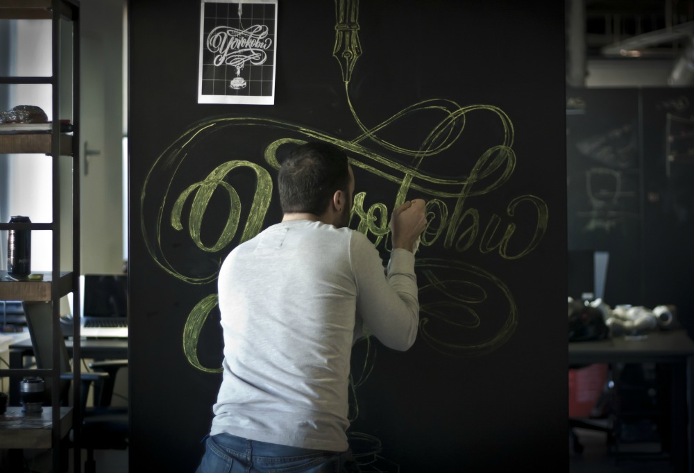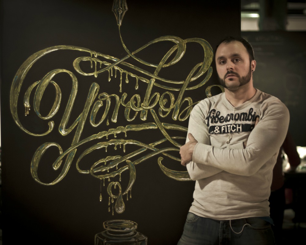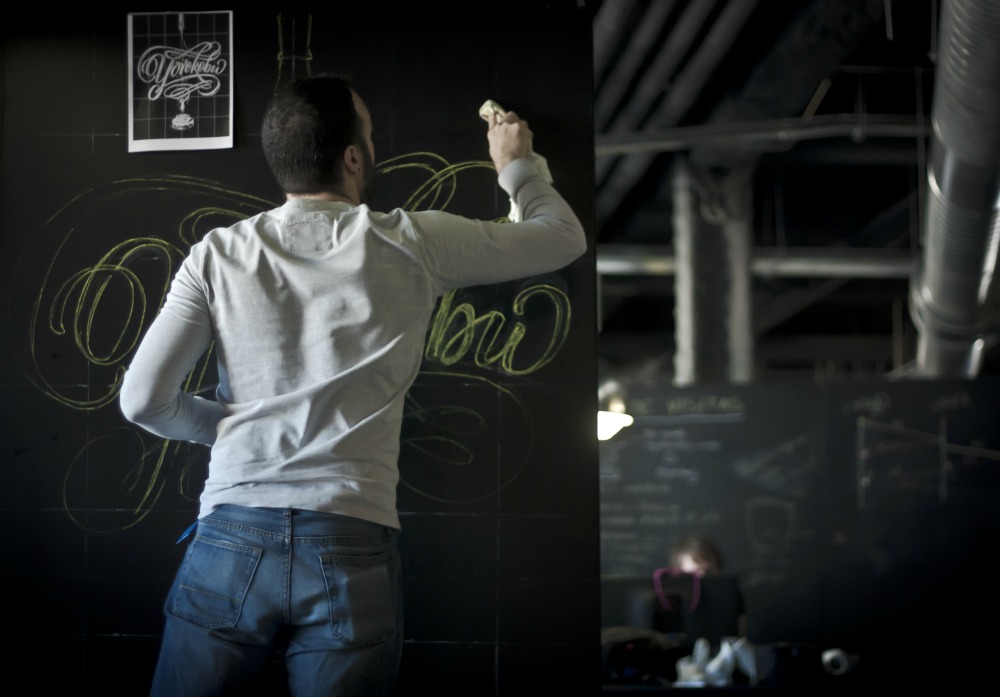No hay más norma que la libertad para diseñar una portada de Yorokobu. Esta vez, sin embargo, la ley se quebrantó. Había una imposición: una pizarra. El ilustrador y calígrafo José Luis Vivas (Joluvian) tenía una pizarra limpia en una pared donde debía que escribir la palabra Yorokobu.