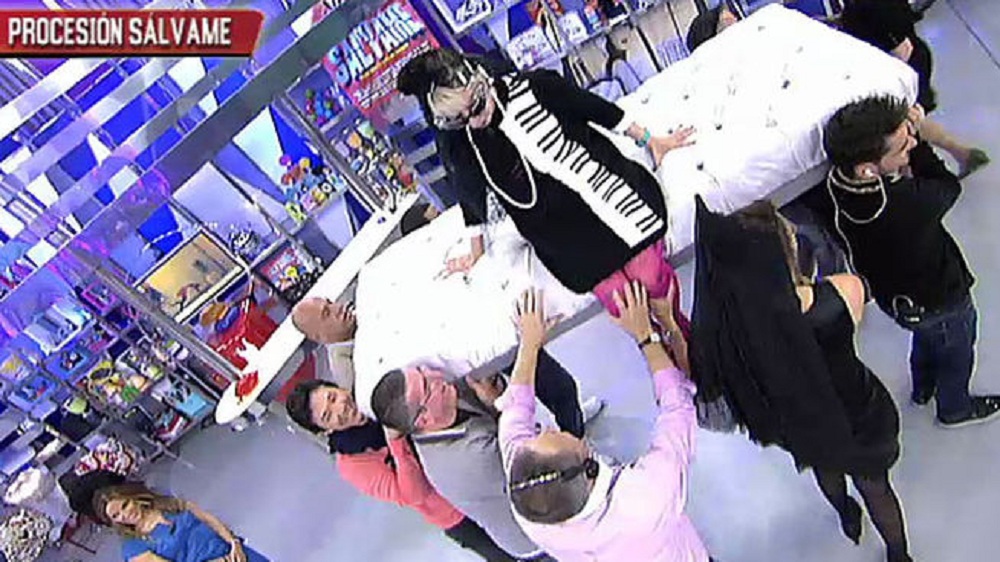 Qué: Coincidiendo con el Viernes Santo, los colaboradores de Sálvame Deluxe (entre los que hay reconocidos fiesteros como Mila Ximenez, Koto Matamoros y Belén Esteban, pero también gente de orden como Jaime Peñafiel) decidieron homenajear a la Semana Santa. Las chicas llevaban la tradicional mantilla y toda la nómina de tertulianos bajó por las escaleras centrales a modo de procesión.
