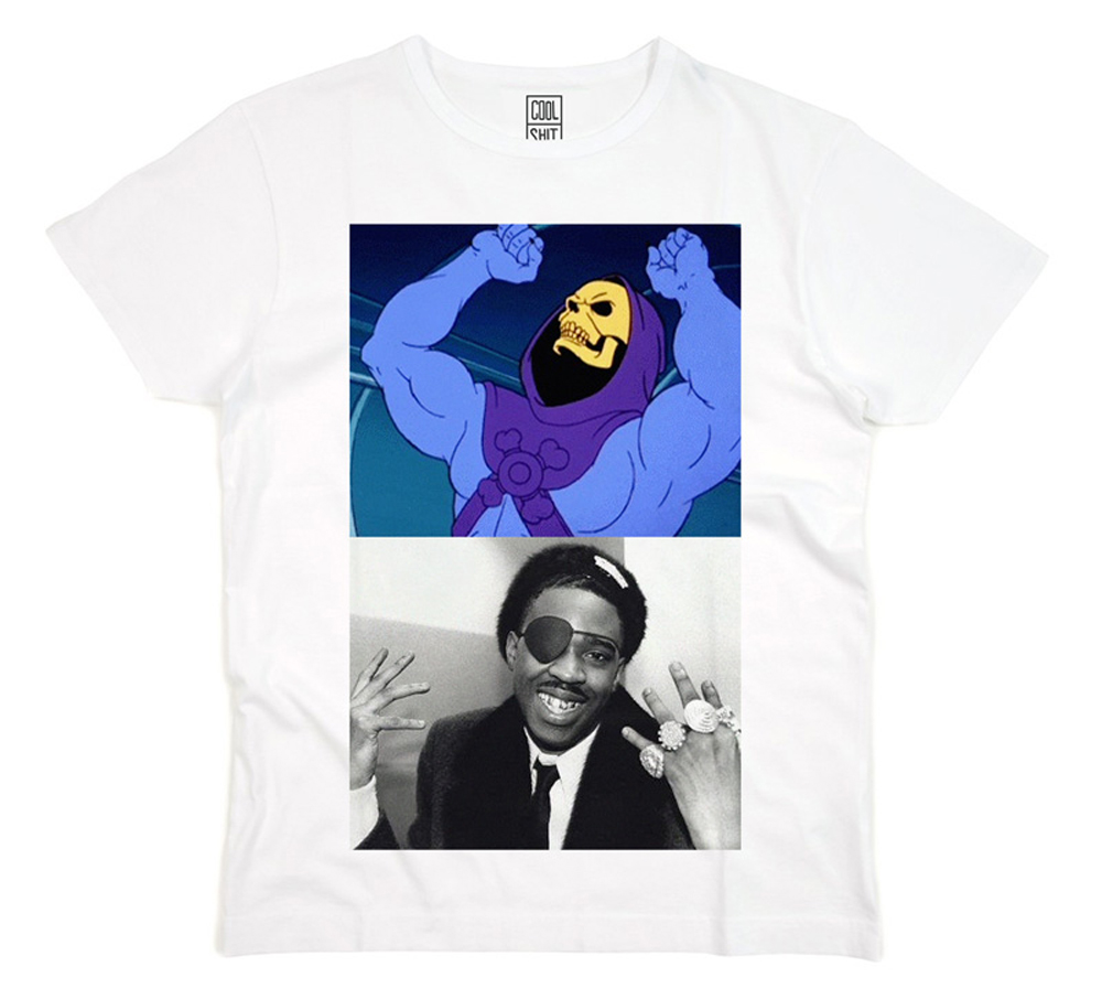 Dos imágenes enfrentadas. Una es ‘cool’ y otra es ‘shit’. El momento arduo llega cuando hay que establecer cuál es cuál. Esta yuxtaposición se produce en una serie de camisetas, diseñadas por Hungry Castle, que mezclan el pasado y el futuro.