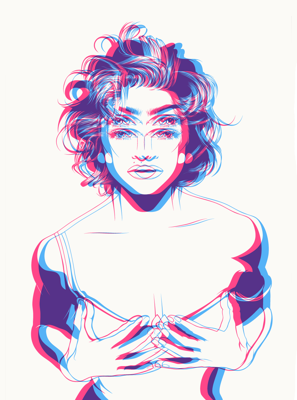 Puede que esto tenga que ver con sus “primeros referentes”: Andy Warhol y Roy Lichtenstein. Pero conforme fue conociendo blogs de diseño y portales como Behance, “estos referentes han ido a más”, apunta. “Podría decir que la lista es casi interminable. Unos por el estilo de trazado, otros por las texturas que emplean, otros por el tratamiento de la tipografía, otros por la simplicidad de las tintas…”.
