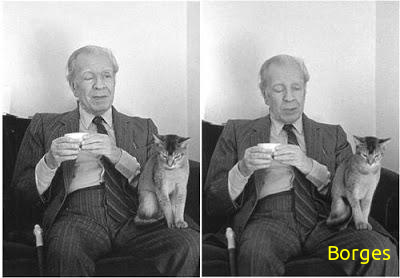 ¿Y cuánto debe Borges a sus amados gatos? La literatura borgiana trata del hombre que es y que a la vez no es, que está y no está, que muere y no muere… un hombre como el gato de Schrodinger.