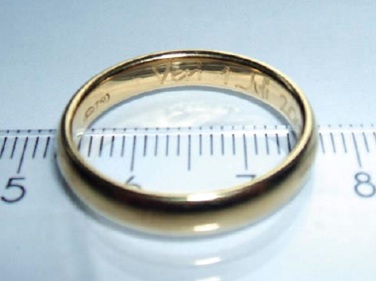 En él muestra un gráfico del peso que revela una pérdida media de aproximadamente 0,12 mg de oro a la semana por el rozamiento mientras el anillo estuvo en el dedo. Y determina como el diámetro máximo del anillo era de 1,77 milímetros cuando se lo puso en el altar, pero al año ya había bajado a 1,76 milímetros.