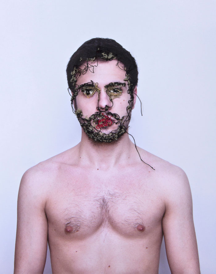 Puede que el artista nunca sintiese temor porque creció entre costuras. El fotógrafo vio a su madre coser desde su más remota infancia. Por eso también utiliza hilo de telas en vez de hilo quirúrgico.