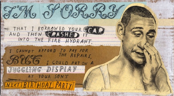 Actualmente, se encuentra trabajando en obras de medio formato y técnica mixta con textos y retratos a lápiz sacados de fotografías antiguas encontradas, o de gente que nunca ha conocido. Estas obras las mostrará en mayo de 2013 en una exposición individual titulada I Can’t Apologize Enough. Yo no necesito que se siga disculpando, me encanta lo que hace.