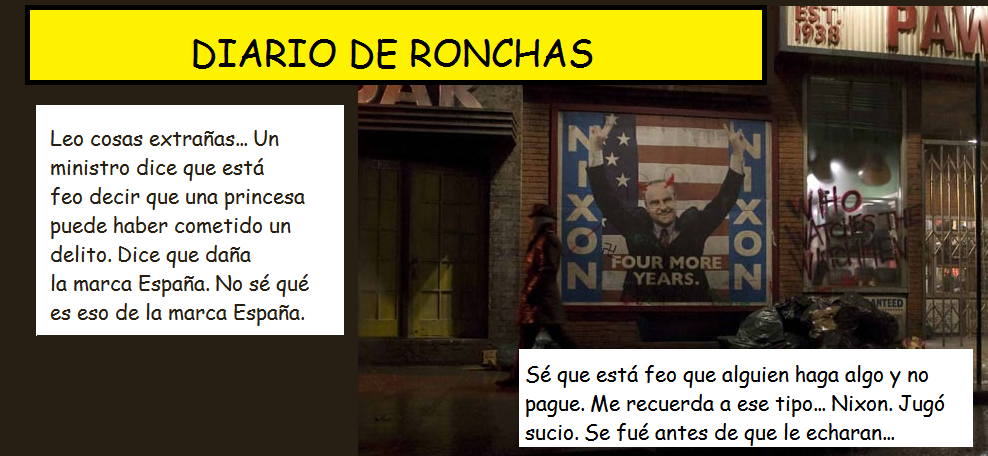 Ronchas es un ciudadano medio que tiene «agujeros» y ante la imposibilidad económica de irse a tomar una caña con los amigos vierte sus pensamientos en un diario. Los archienemigos de Ronchas son políticos corruptos, grandes empresarios defraudadores, miembros de la Casa Real condenados por delitos monetarios y banqueros que arruinan a sus clientes a través de complejas operaciones económicas.