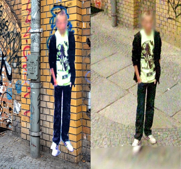 Pero no en una pared cualquiera. Cirlo coloca los pósters a tamaño real de las imágenes de Street View en el lugar exacto en las que fueron tomadas. Dice que, de este modo, pretende retomar el debate sobre este tipo de prácticas por parte de empresas como Google.
