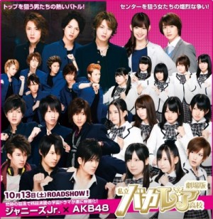 AKB 48 es una girl band japonesa muy popular en tierras asiáticas. Su particularidad es que está compuesta por 48 chicas (hay estados europeos con menos habitantes). Al ser divididas en tres equipos (El A, el K y el B), facilita que estén de gira permanentemente. Lo cierto es que sus discos siempre se cuelan entre los más vendidos del mundo. El conocido productor Yasushi Akimoto quiere seguir haciendo dinero a costa del grupo y ahora ha ideado Bakaleya High School. Es un drama de hora y media en el que se enfrenta a las chicas con Johnny’s Jr, los miembros de una agencia de talentos que forma a boy bands. Chicos de barrio contra niñas de colegio pijo. Lo que pasa exactamente en la película no lo sabemos, es difícil de entender para los neófitos en cuestiones musicales niponas, pero tiene pinta de ser como Grease multiplicado por 48.