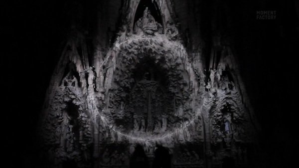 El aspecto monocromático de la Sagrada Familia actual no responde a los deseos iniciales de Gaudí. Entre los planes del arquitecto para su obra magna estaba la de pintar la fachada de diversos colores para dar más fuerza al edificio. Durante los pasados 21, 22 y 23 de septiembre, el deseo del creador catalán se hizo realidad y la iglesia fue invadida por intensos visuales proyectados sobre su ondulada superficie.