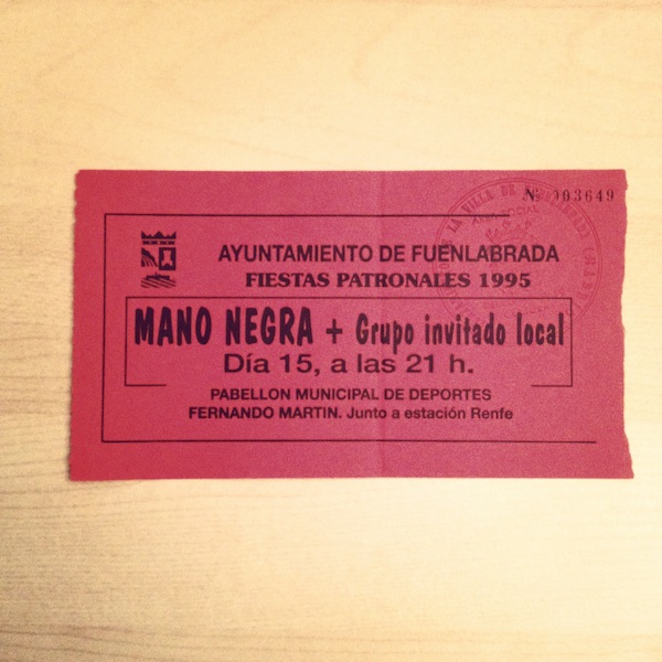 En el caso de la entrada de Mano Negra, «la más cutre de todas», Sanz agradece que un ayuntamiento apostara por un grupo así. El de los conciertos de rap del 98 de Alcorcon «está hecha a mano».