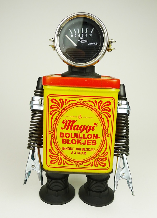 Luego, como desestresante, empezó a construirlos él mismo. “Soy muy fan de las cámaras de fotos, cine y televisiones de los años 50 y 60 y con esas piezas, más los packs de viejas marcas, empezaron a surgir de mi cabeza estas creaciones”. Javier Arcos reconoce su afición por los superhéroes y dice que cuando viaja busca piezas que puedan convertirse en un futuro robot. “Si eso es ser friki… pues, sí, lo soy”.