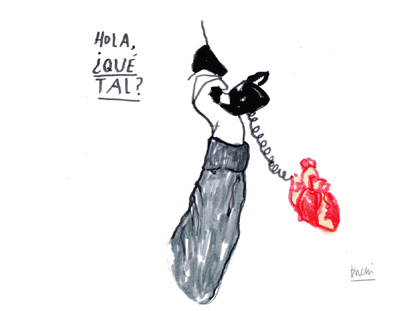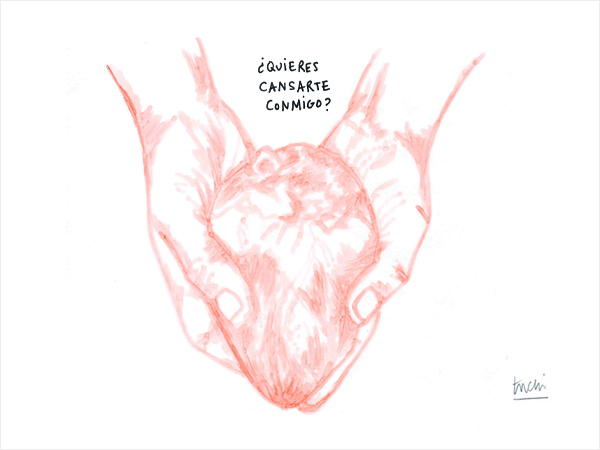 A tuchi le cuesta hablar de lo que hace “No sé cómo describir mi trabajo. Es algo intuitivo. Hago dibujos que hablan”. Pero termina comentándolo con detalles muy visuales y contestando como si dibujara.