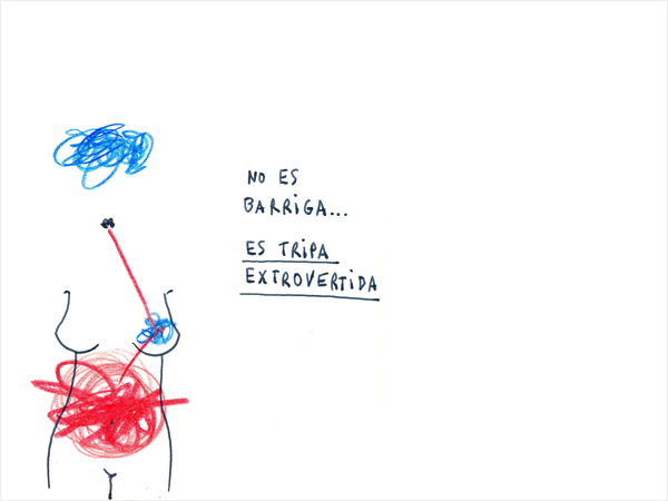 La fuerza de muchos de sus garabatos y las verdades como puños de sus reflexiones son más un grito definido que se hace notar en un mundo abarrotado de mensajes. La aparente simpleza y el más por menos como expresión identifican su estilo. No le tiene miedo al espacio en blanco y sí la suerte de saber parar “Para mí un yayayay no termina hasta que no tengo esa sensación de que encaja, como si hiciera «clic» en mi cabeza. Sentir eso es lo mejor que tengo”.