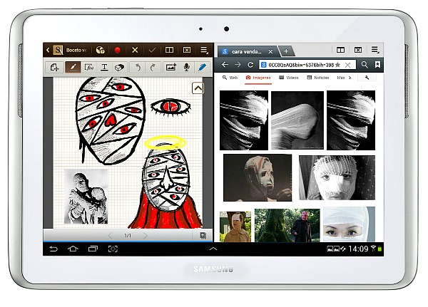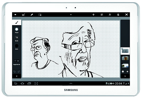 Una vez decidido el planteamiento de su ilustración, Llorens tomó el puntero del Galaxy Note 10.1 para acometerla. Precisamente, fue este elemento lo que más le llamó la atención del nuevo dispositivo de Samsung: «El puntero está muy conseguido. Es lo más parecido a una tablet de wacom convencional que he visto en un aparato de este tipo».