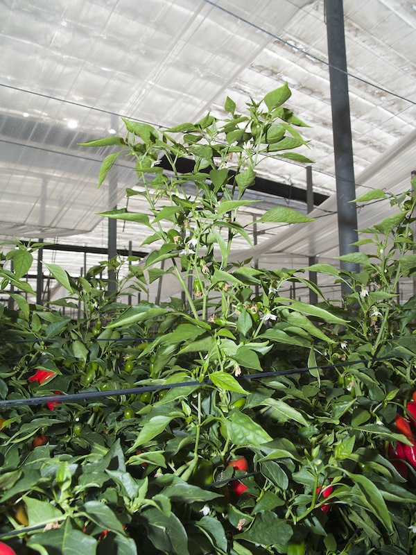 El comentario puede resultar chocante dentro de un invernadero, que parece más industria que agricultura, automatizado, controlado por ordenador, y sin tierra: se trata de cultivo hidropónico de fibra de coco, reciclada de la industria del automóvil (se utiliza para fabricar los salpicaderos de los coches).
