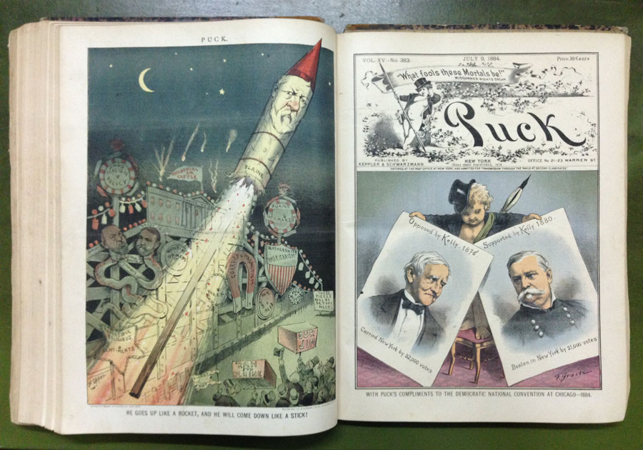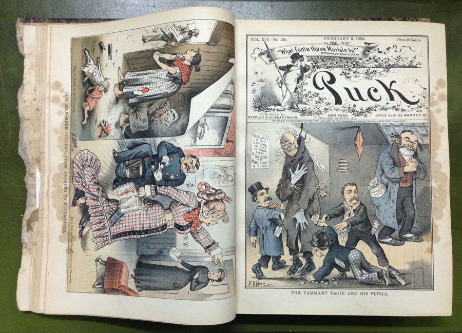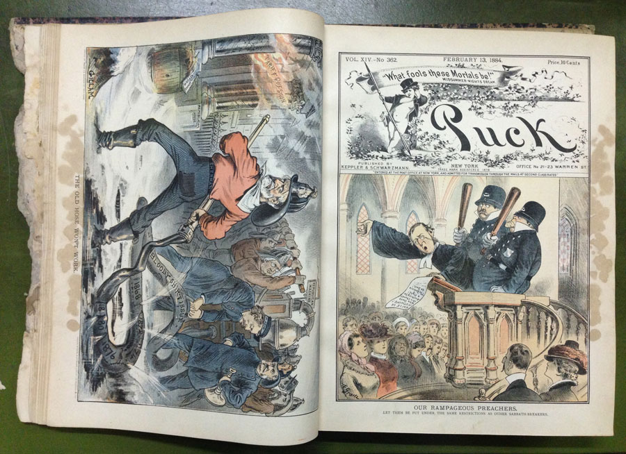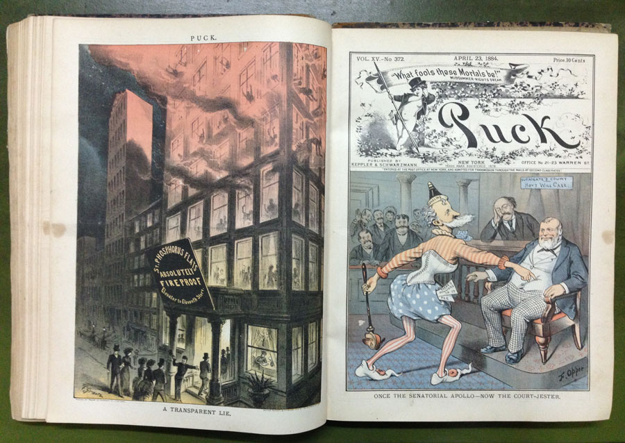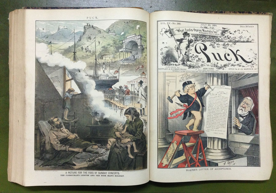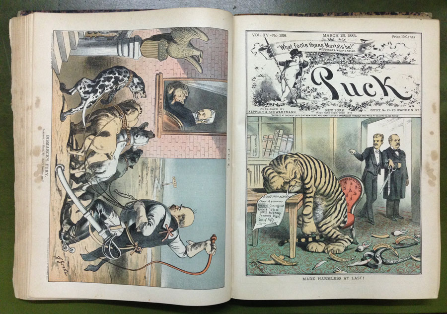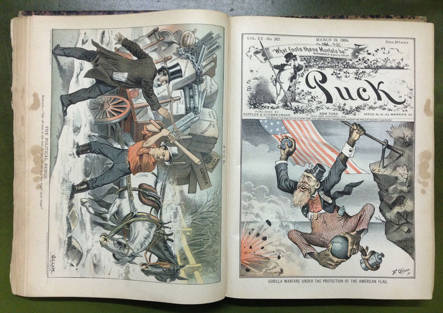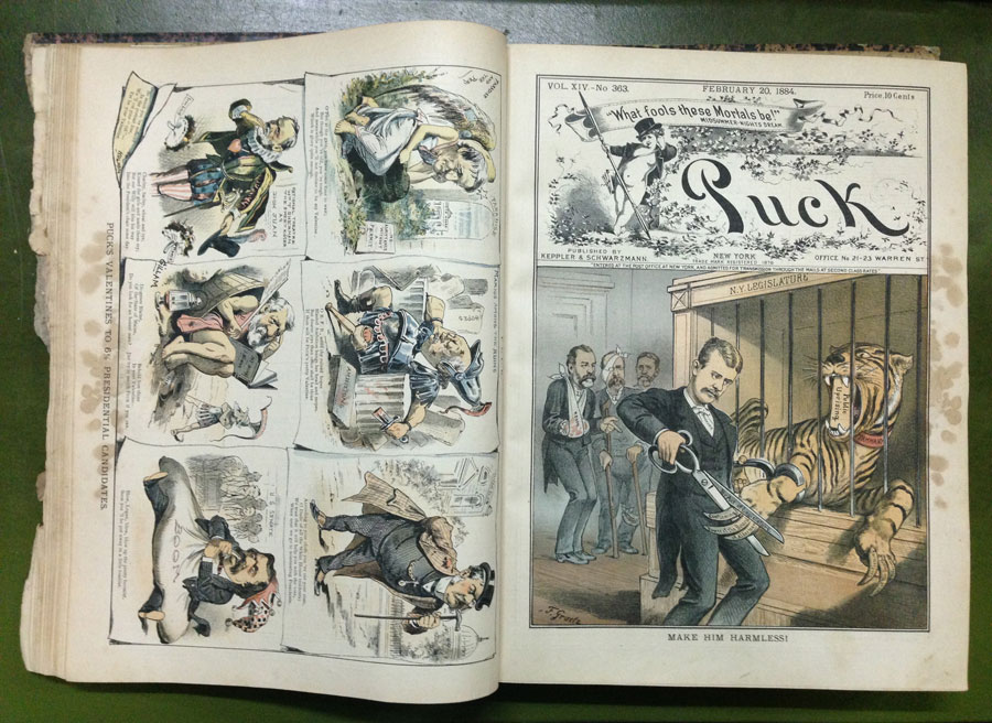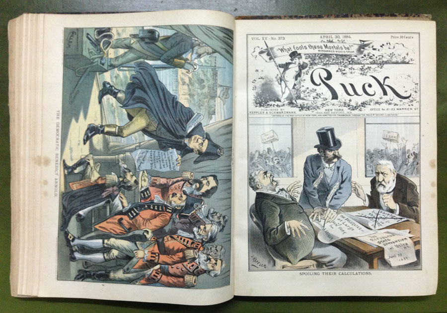 Algunos ejemplares de la revista satírica Puck de 1884.
