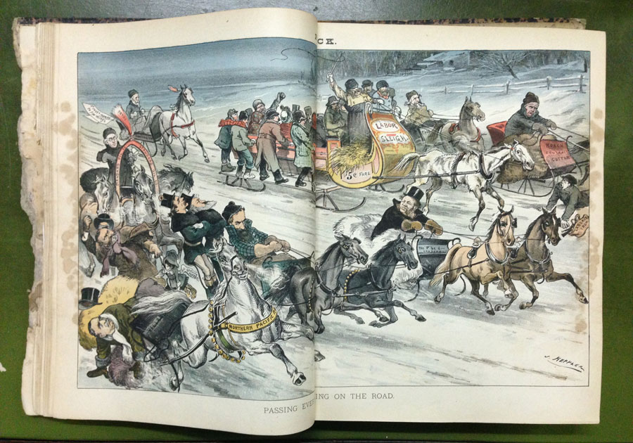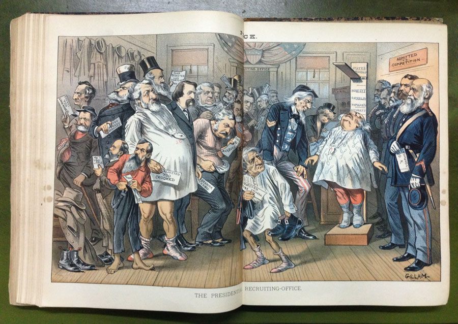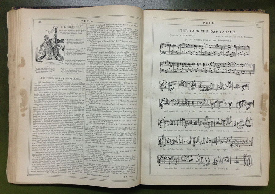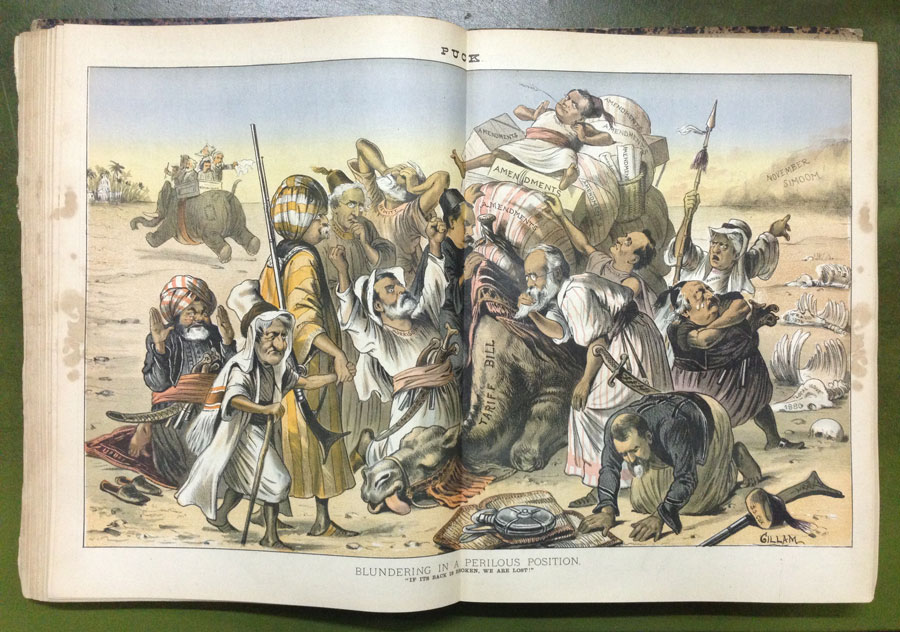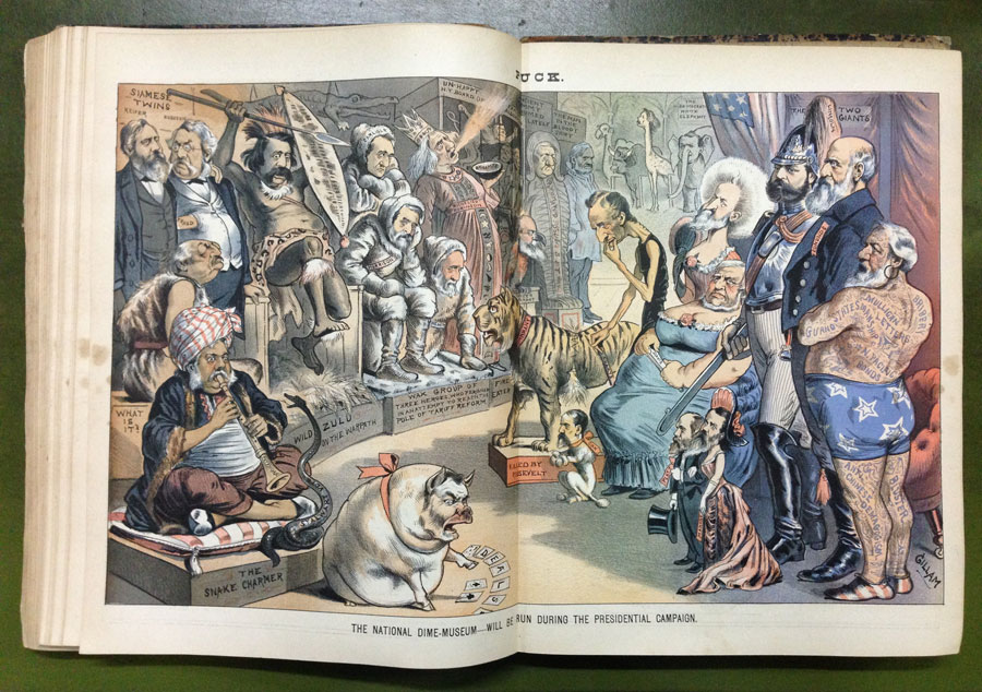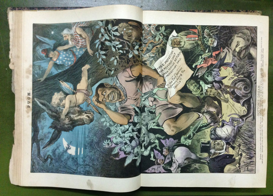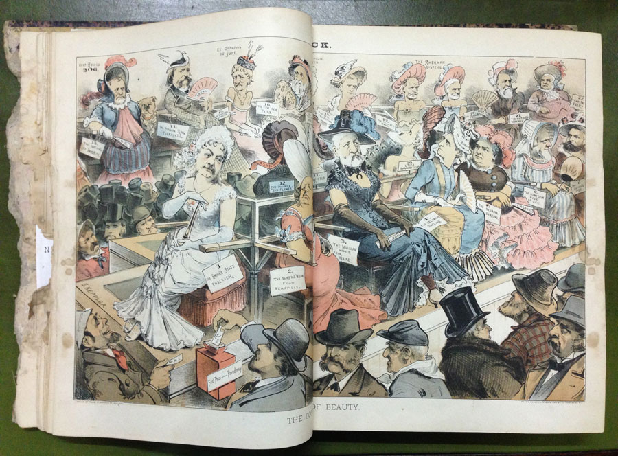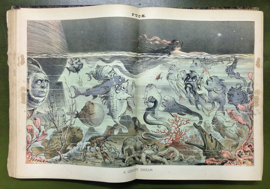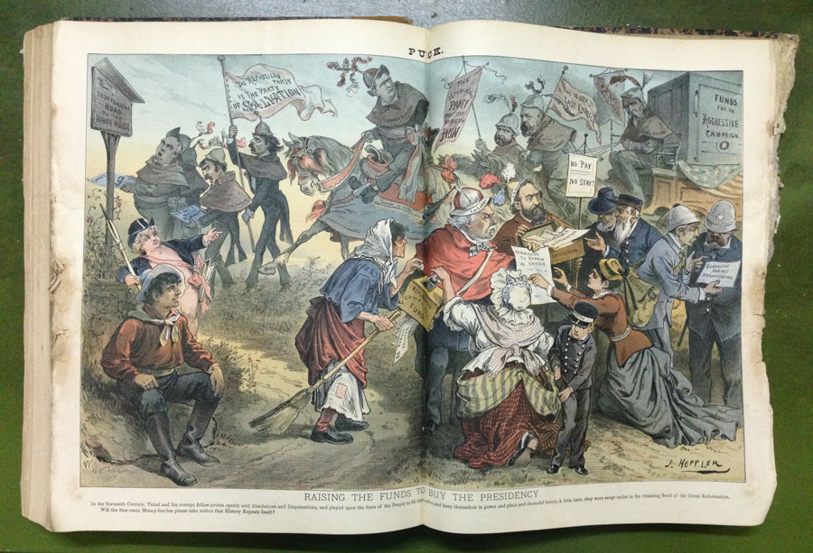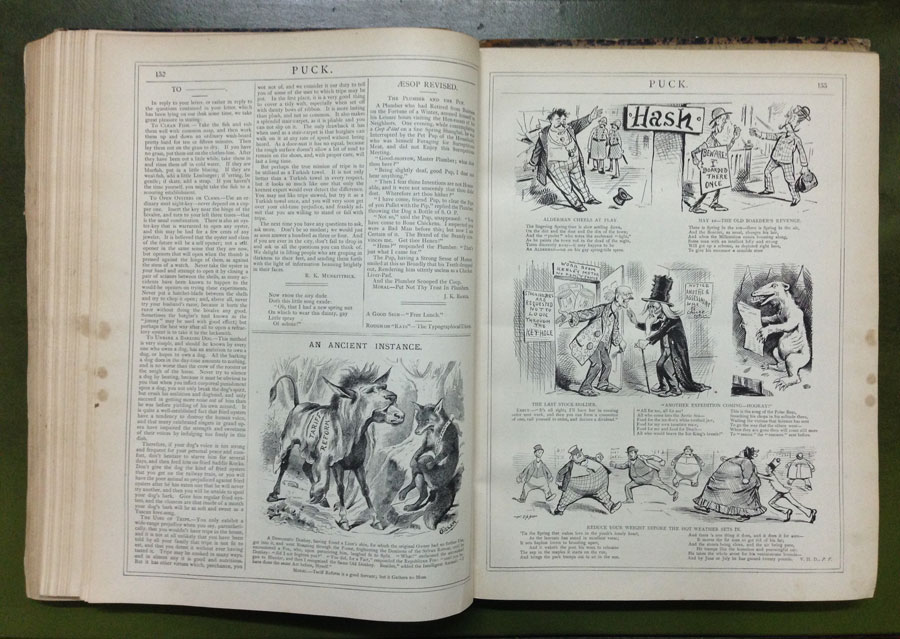 Algunos ejemplares de la revista satírica Puck de 1884.