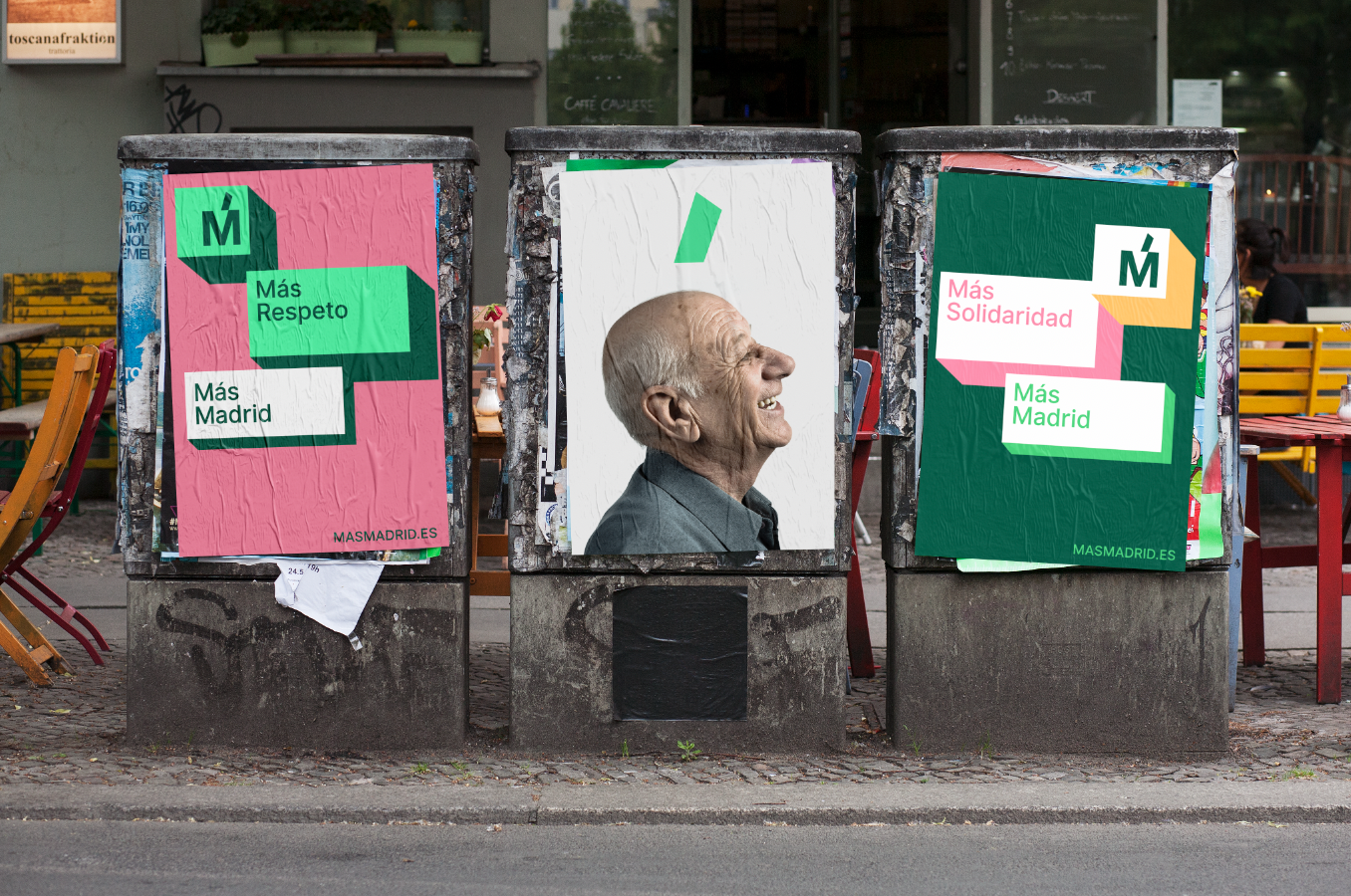 «El verde es, ante todo, esperanza, y también aúna todos los valores ecologistas», explica Quim Marín, responsable del branding original de Más Madrid, que sirvió de base para el de Más País en su salto nacional, aunque el desarrollo no fuera suyo. «Lo que importa realmente no es el color, es el tono», concreta. Porque sí, Vox y Más Madrid usan el mismo color, pero no el mismo tono, lo cual compara también con los discursos políticos de ambas formaciones.