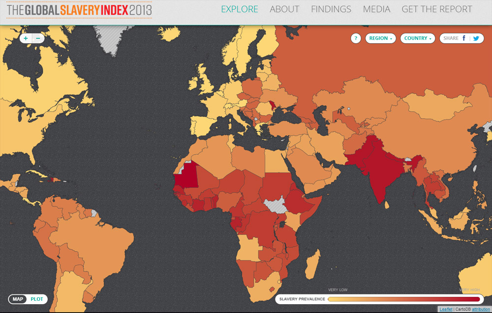 Para lavar su conciencia, Forrest pidió a otro ilustre millonario y filántropo, Bill Gates, consejo para poner coto a la esclavitud en el mundo. “Si no se puede medir, es como si no existiera”, respondió Gates, animándole a estudiar y difundir el problema para poder atajarlo efectivamente. Global Slavery Index 2013 es el fruto de este intento inicial por medir el fenómeno de la esclavitud. El siguiente paso: intentar abolirla.