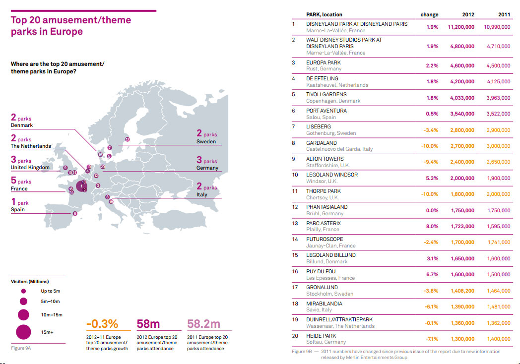 ¿El resultado? El cuarto mayor grupo del mundo en el sector, según el informe presentado este año por Themed Entertainment Association (TEA), la macroorganización mundial del sector: según sus datos en 2012 el grupo tuvo 27,1 millón de visitantes, un 3,5% más que el año anterior. Lejos, claro, del gigante: Disney cerró el año con 126,4 millones de visitantes, más del doble que el segundo, Merlin Entretainments Group, que tuvo 54 millones.