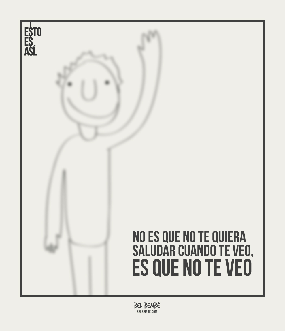 Esa primera pieza surgida de un impulso creó la identidad y el manual de estilo de Esto es así. Bel Bembé explica que ese dibujo marcó «las directrices». «En esa primera viñeta se ve que era algo que hice rápidamente para compartir solo con mis amigos. Después me convencieron en darle una identidad para seguir haciendo viñetas similares», especifica. «Le puse un marco y la firma, y las llamé Esto es así porque es una frase que digo muy a menudo». Una especie de sentencia final, con cierta resignación, similar a ‘es lo que hay’.