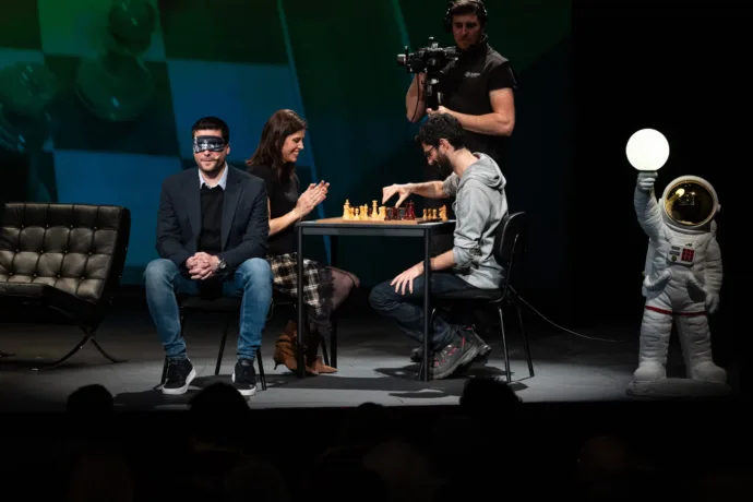 Después de que el atleta y campeón olímpico Guillermo Rojo dejara ojiplático al personal allí reunido al revelar que, como liebre, puede registrar el tiempo deseado con un margen de error de solo una o dos centésimas, el ajedrecista José Carlos Ibarra habló de lo importante que es en su disciplina intentar adueñarse del espacio (de la mayor parte del espacio en el tablero, en concreto) y el saber administrar el tiempo. Y lo demostró con dos partidas de ajedrez contra dos personas del público a los que ganó, literalmente, con los ojos cerrados.