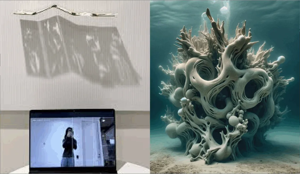 THE WASTIVE integra estos materiales en una estructura móvil. Una cámara capta en tiempo real la posición del público, mientras un microcontrolador activa servomotores que generan un movimiento ondulante inspirado en el flujo del mar. El patrón cambia según el tiempo y la ubicación del espectador, creando una respuesta física interactiva.