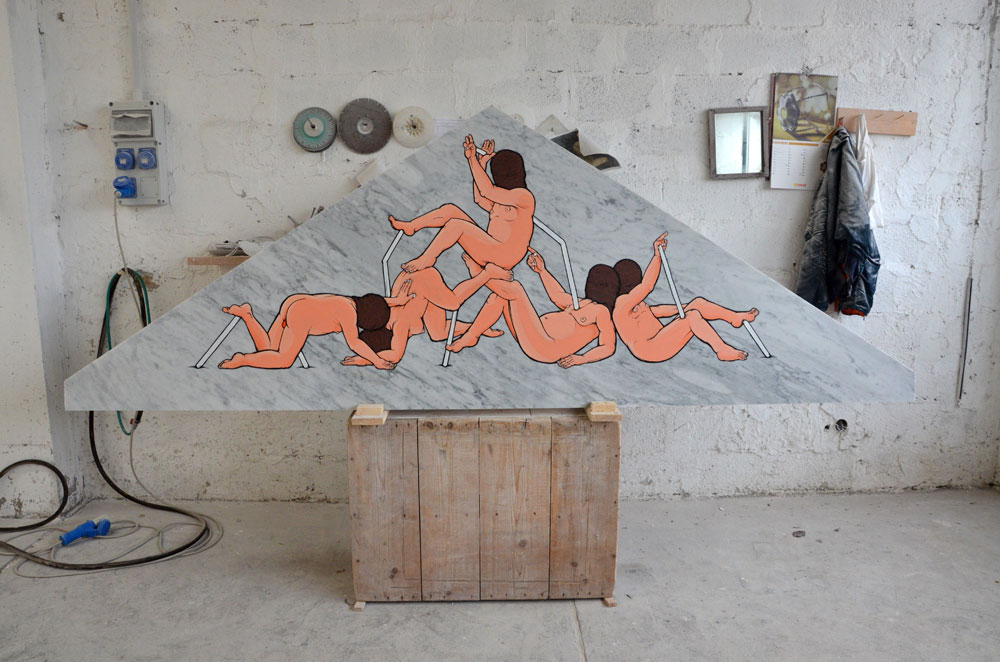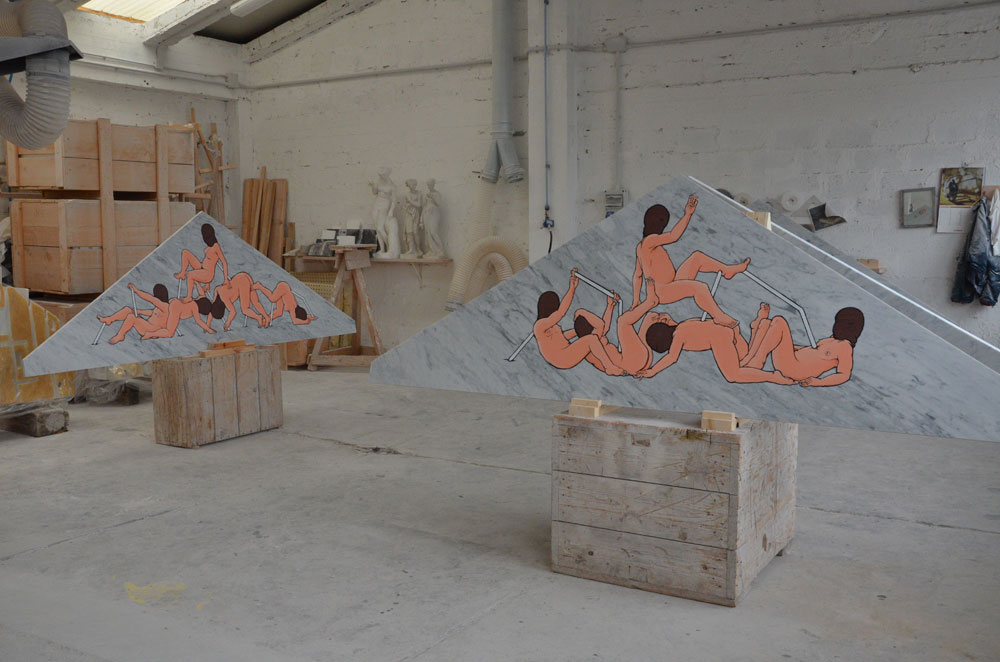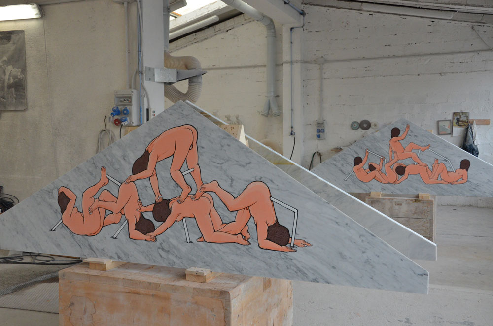 Lo explica así el artista en la presentación de estas obras, expuestas en el Museo Cívico del Mármol de Carrara, hasta el próximo mes de diciembre. El proyecto forma parte de Data Base (sobre las ascensiones y las caídas cíclicas de los beneficios económicos de las oligarquías financieras).
