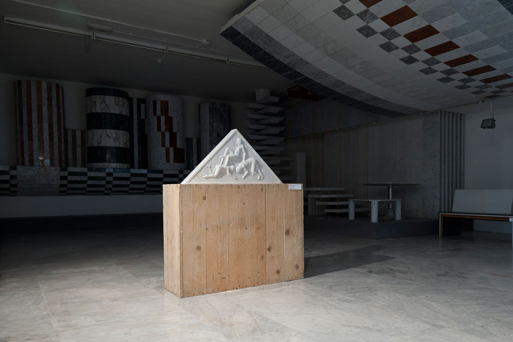 El peso de la historia en el material empleado, el mármol, no deja espacio a otra evocación. Lo único que cambia es el dios. Ya no es una banda elegante de todopoderosos. Ahora es un ente invisible y perverso que está arrojando al vacío el destino de sus súbditos.