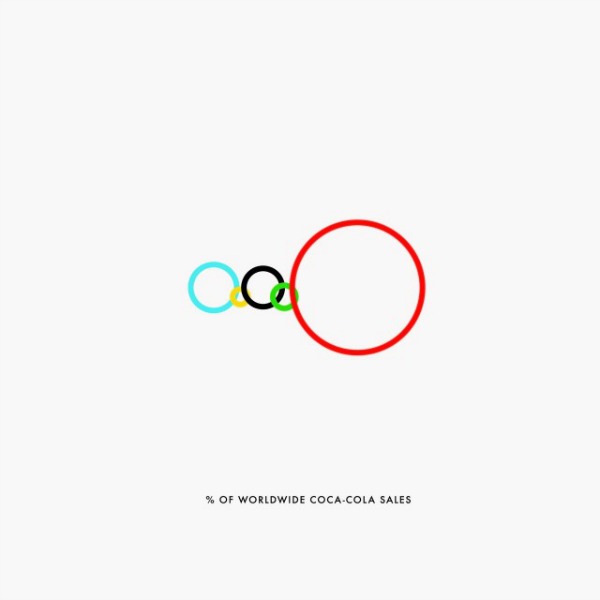 La idea se le ocurrió a Gustavo Sousa y decidió materializarla en una serie de infografías en las que el anillo negro es Europa; el azul, Oceanía; el rojo, América; el amarillo, África, y el verde, Asia.