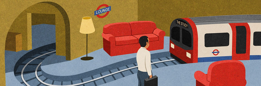 Ilustración que muestra el trabajo remoto desde casa. La imagen, al final, no fue publicada.