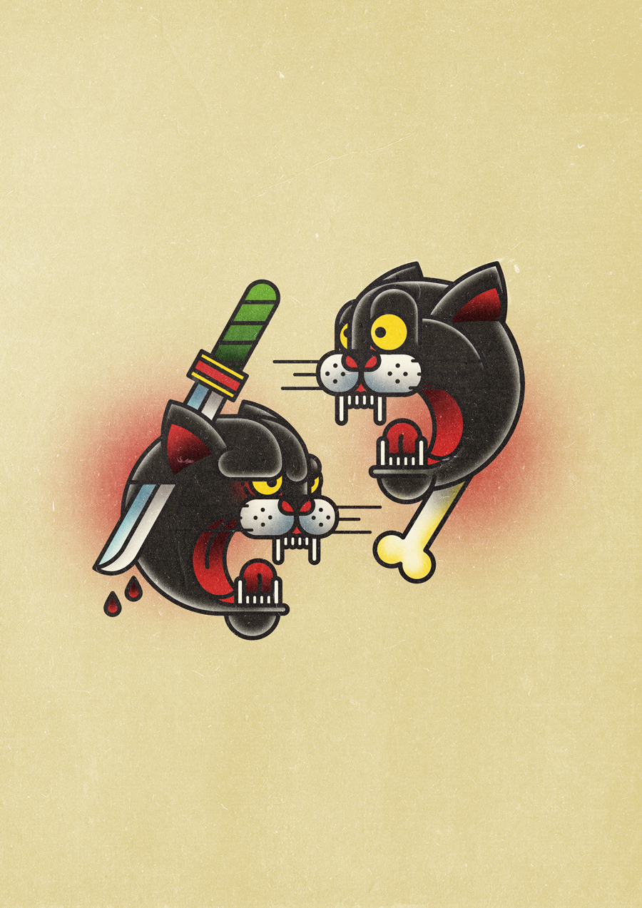 «Me he inspirado, sobre todo, en el tattoo tradicional para poder crear mis diseños. He respetado la forma real de hacerlos. Los he diseñado llevando al ordenador el modo en el que se hacen, realmente, en la piel. Primero los he dibujado (la mayoría, a mano), los he escaneado y después he pasado la línea, el sombreado y, por último, el color», cuenta.