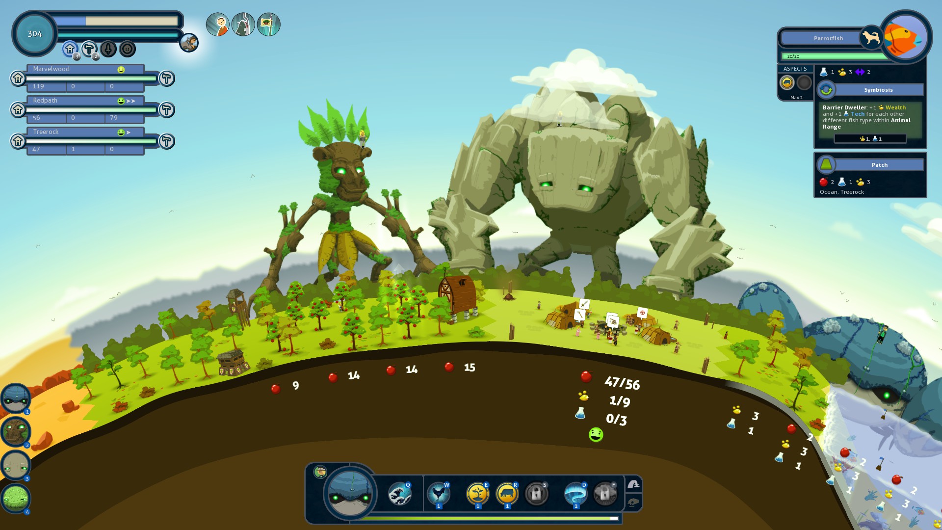 Por eso Reus, un juego indie que salió a la venta el pasado 16 de mayo, ha sido una pequeña sorpresa. Repite muchas de las mecánicas sagradas que he enumerado antes (libre albedrío, castigos, alteración de la naturaleza, etc) e inventa algunas nuevas muy interesantes. Por ejemplo, no encarnamos a un dios, sino que controlamos a cuatro al mismo tiempo en tercera persona. Cada uno de un elemento diferente, que incrementan sus poderes cuando los humanos los adoran. Combinando bien las habilidades de los cuatro titanes, los pueblos crecen, se enriquecen y viven felices. Y también podemos ‘escacharlos’ como cucarachas si se portan mal o si se nos pone en el ‘fistro’. Pero lo de ser felices, lo principal.